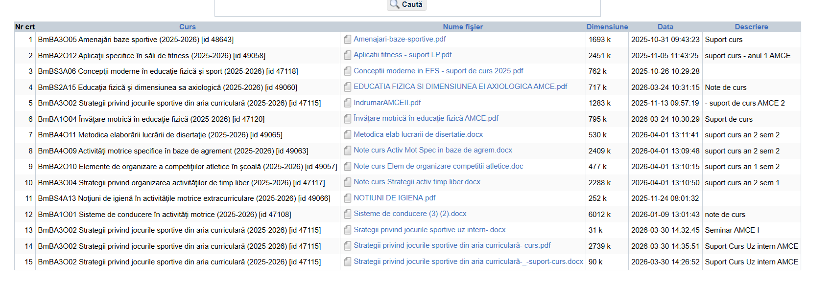 Programe de studii Home Academic Programe de studii Programe de studii Core cursuriPlan de învățământ 2025-2026 Program de studii de licență Educație fizică și sportKinetoterapie și motricitate specială Program de studii de master Activități motrice curriculare și extracurriculareSport și performanță motrică Arhivă Fișe de disciplină 2025-2026 Educație fizică și sportKinetoterapie și motricitate specialăActivități motrice curriculare și extracurriculareSport și performanță motrică Compatibilitatea cu planurile unor programe similare din țarăResurse didactice pentru programele de studii universitare de master – SPM și AMCE Distribuie: Structura anului universitar Programe de studii Calitate Cercetare Bibliotecă Regulamente Strategii, planuri operaționale, Rapoarte